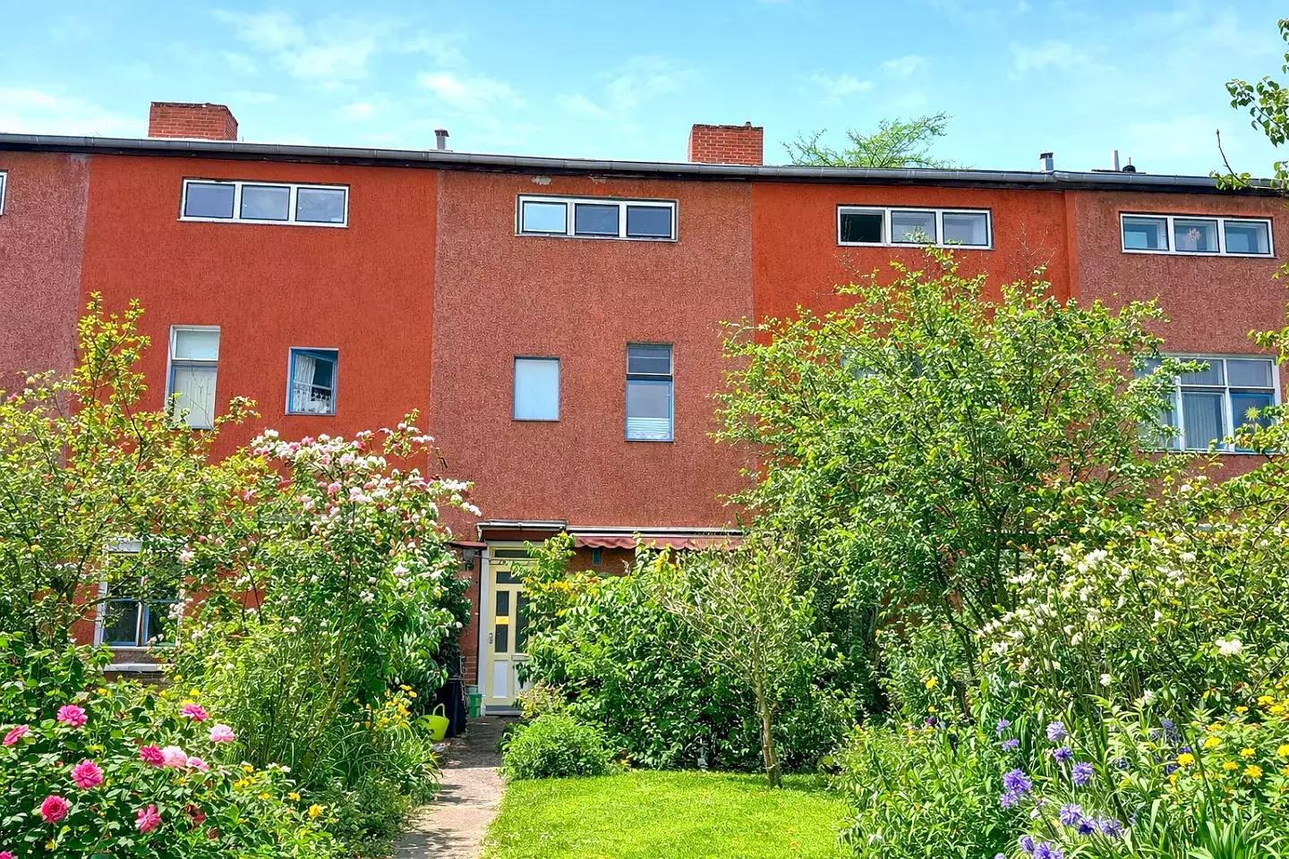 Das Reihenmittelhaus liegt in der begehrten Hufeisensiedlung in Berlin-Britz und überzeugt durch seine ruhige, dennoch zentrale Lage inmitten eines historisch gewachsenen Wohnquartiers. Das Umfeld besticht durch harmonische Reihen- und Einfamilienhäuser, alte Baumbestände und gepflegte Gärten – eine seltene Kombination aus Stadtnähe und naturnahem Lebensgefühl.